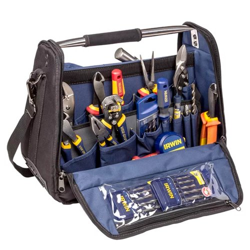 A Mala Robusta Tool Center 18´´ com 23 Compartimentos Internos mais 19 Bolsos Estrutura Interna em Aço IRWIN IW14080 possui uma alça para auxiliar o transporte e divisórias melhorando sua organização, proporcionando maior segurança e agilidade na hora do manuseio. Feita com tecido resistente com um ótimo acabamento, sendo uma excelente opção pra quem procura qualidade e custo benefício;